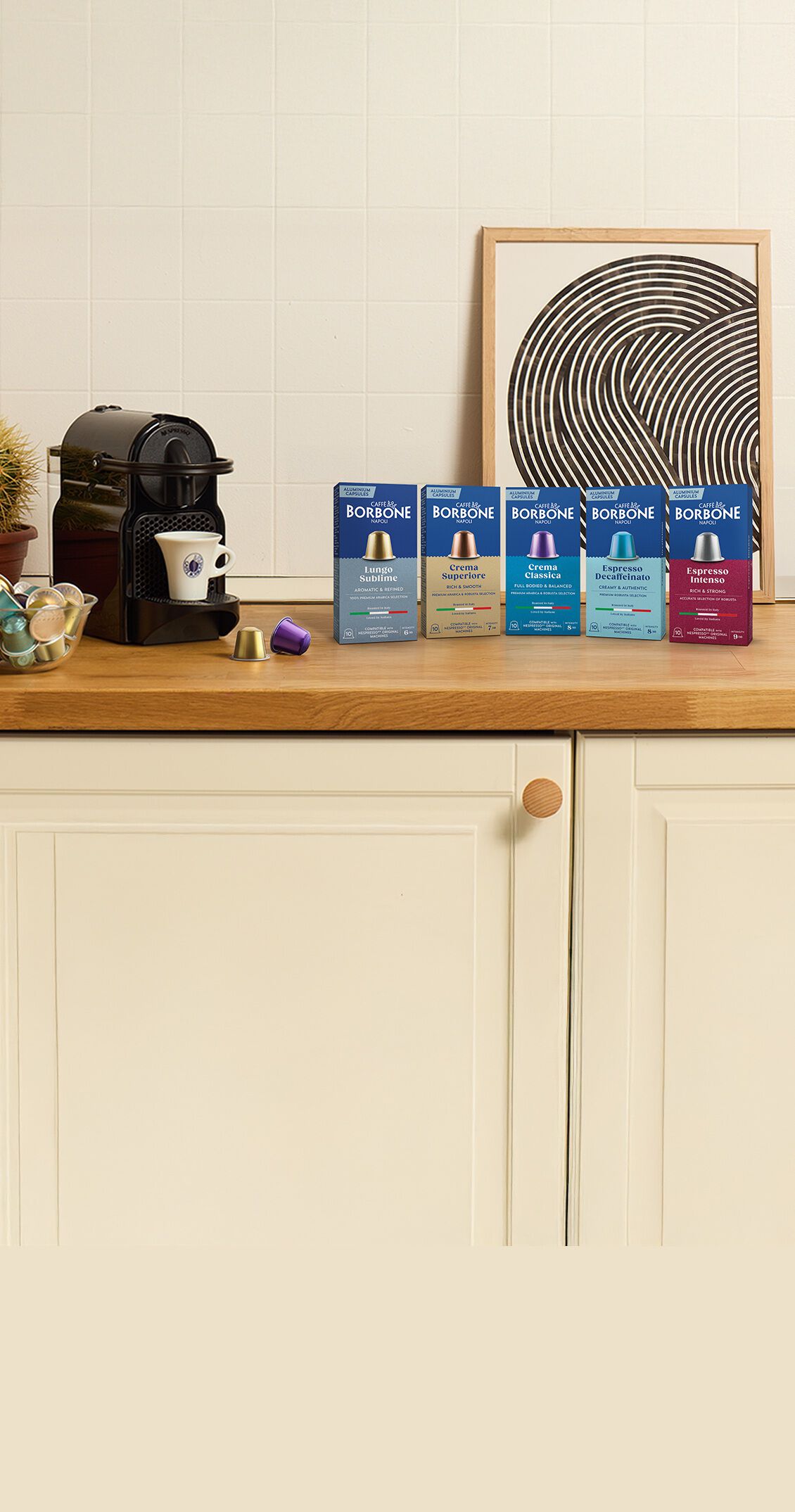 Die Aluminiumkapseln von Caffè Borbone sind so konzipiert, dass sie mit Maschinen des Nespresso®*-Systems kompatibel sind, ohne Kompromisse bei Qualität und Ergebnis in der Tasse.