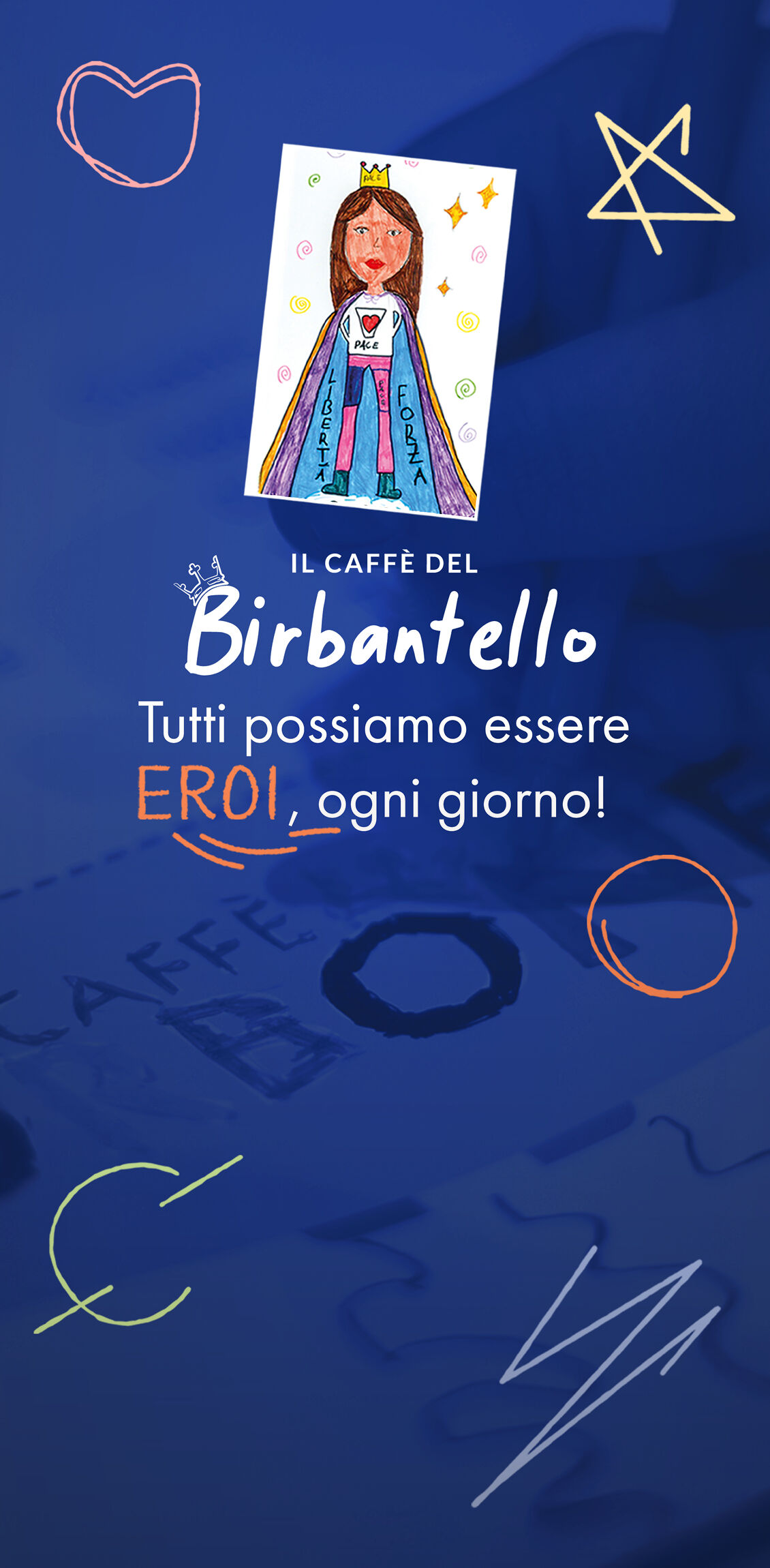 Hemos organizado con estas ONGs un taller lúdico-formativo para dar vida a una edición limitada de cajas de café, coloridas y originales, diseñadas por los “birbantelli”, involucrándolos en el tema de esta edición: ¿quiénes son los héroes del día a día?