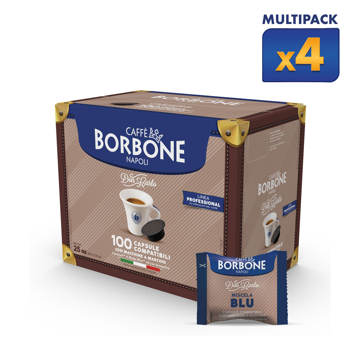 Value Pack: The multipack consists of 4 boxes of 100 each, for a total of 400 Capsules Borbone compatible with Lavazza®* A Modo Mio®* brand machines.