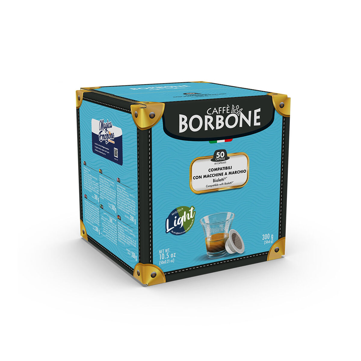 50 Caffè Borbone Light Blend Capsules, compatible with Bialetti®* brand machines.