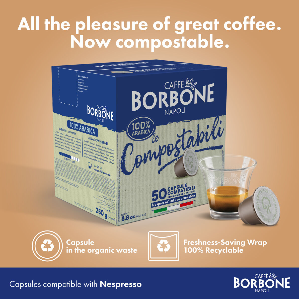 50 COMPOSTABLE capsules compatible with Nespresso®* home machines