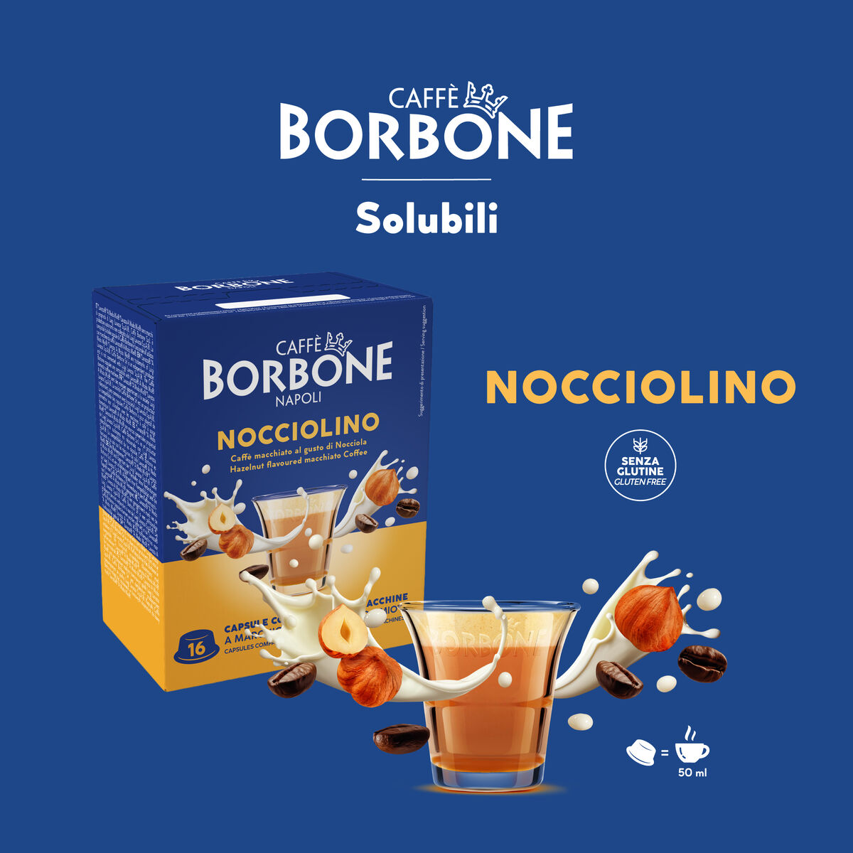 96 Caffè Borbone Nocciolino capsules, for a delicious hazelnut-flavored cappuccino, compatible with Lavazza®* A Modo Mio®* brand machines.