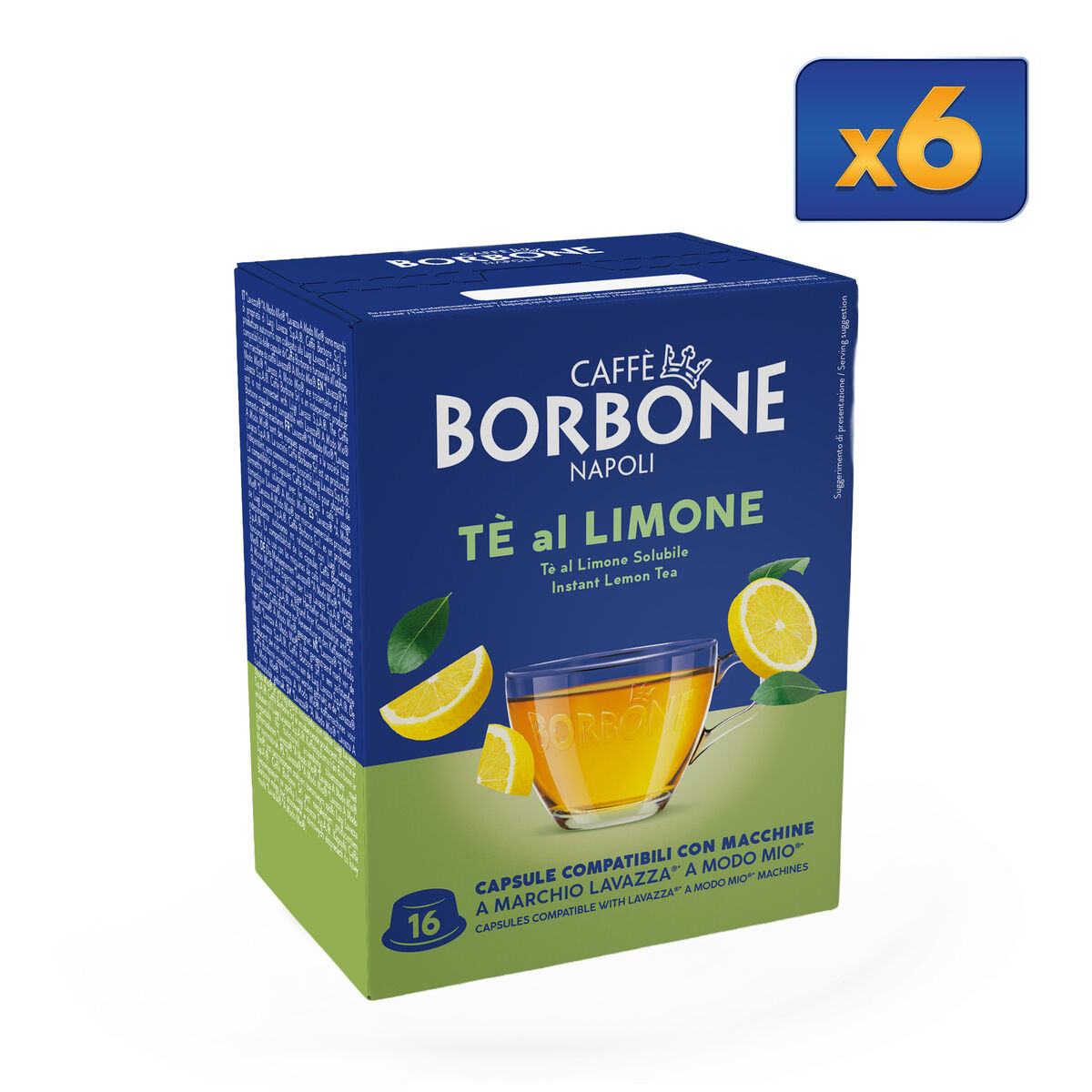 96 Caffè Borbone capsules for a lemon tea-flavored soluble drink, perfect for warming up every break, compatible with Lavazza®* A Modo Mio®* brand machines.