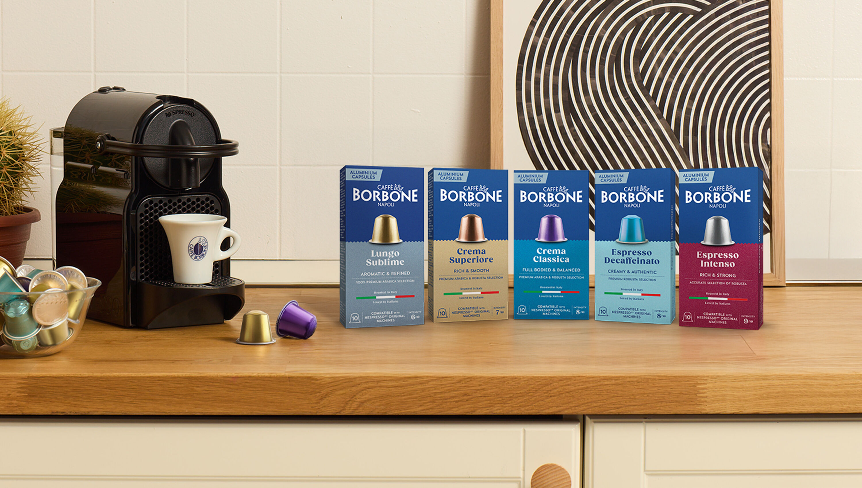 Caffè Borbone’s aluminum capsules are designed to be compatible with Nespresso®* system machines, without compromise in quality or the result in the cup.