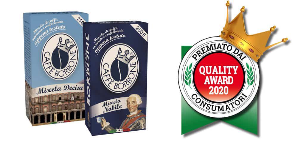 Per il secondo anno consecutivo il giudizio dei consumatori ha permesso al marchio Borbone di ottenere l'ambito Premio Quality Award: nel 2019 sulle cialde e nel 2020 sul caffè macinato moka.