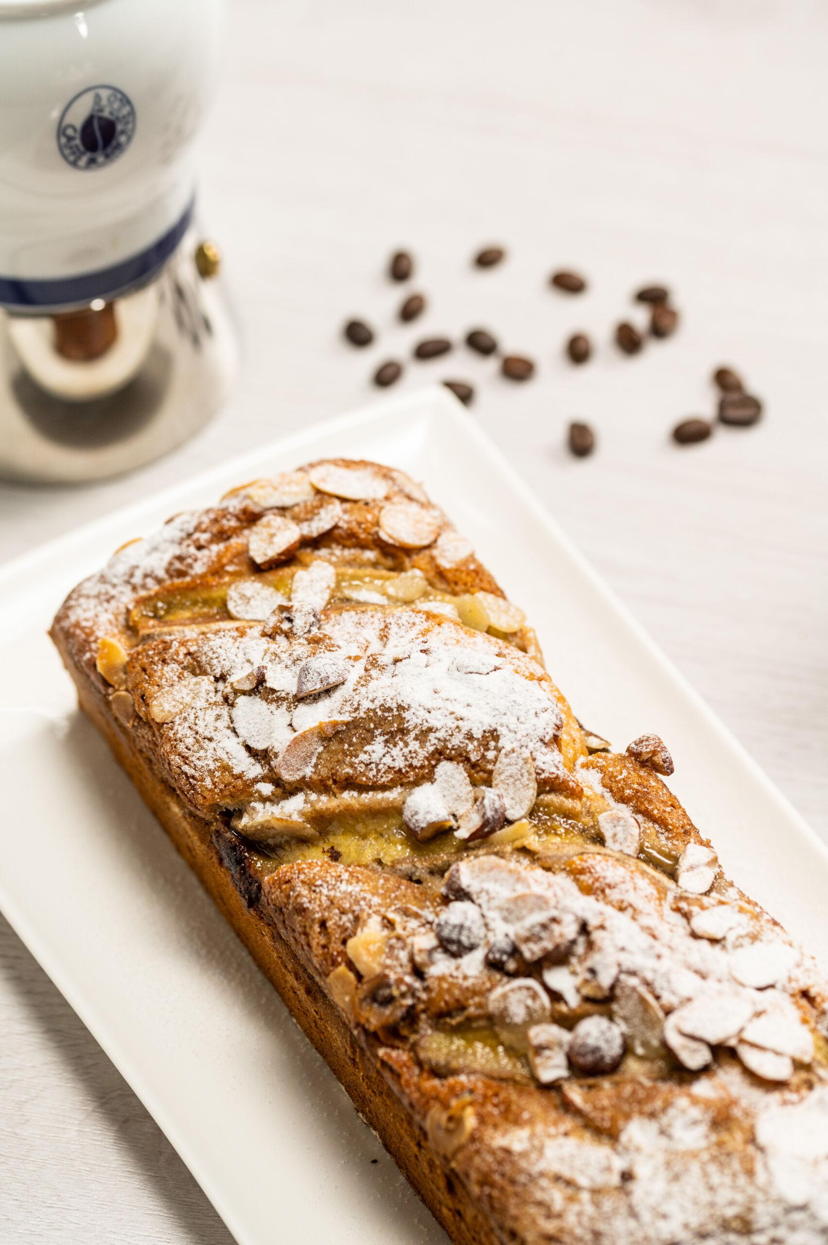 In quest'occasione, Carla ce lo propone in una variante veg, in cui il burro è sostituito dall'olio e il latte vaccino da quello vegetale. La ricchezza dell'impasto, che può essere preparato anche con farina integrale, viene accentuata non solo dalla carica intensa della Miscela Nobile Caffè Borbone, ma anche da una generosa manciata di nocciole, noci e mandorle, presenti anche in superficie assieme a fette sottili di banana.
