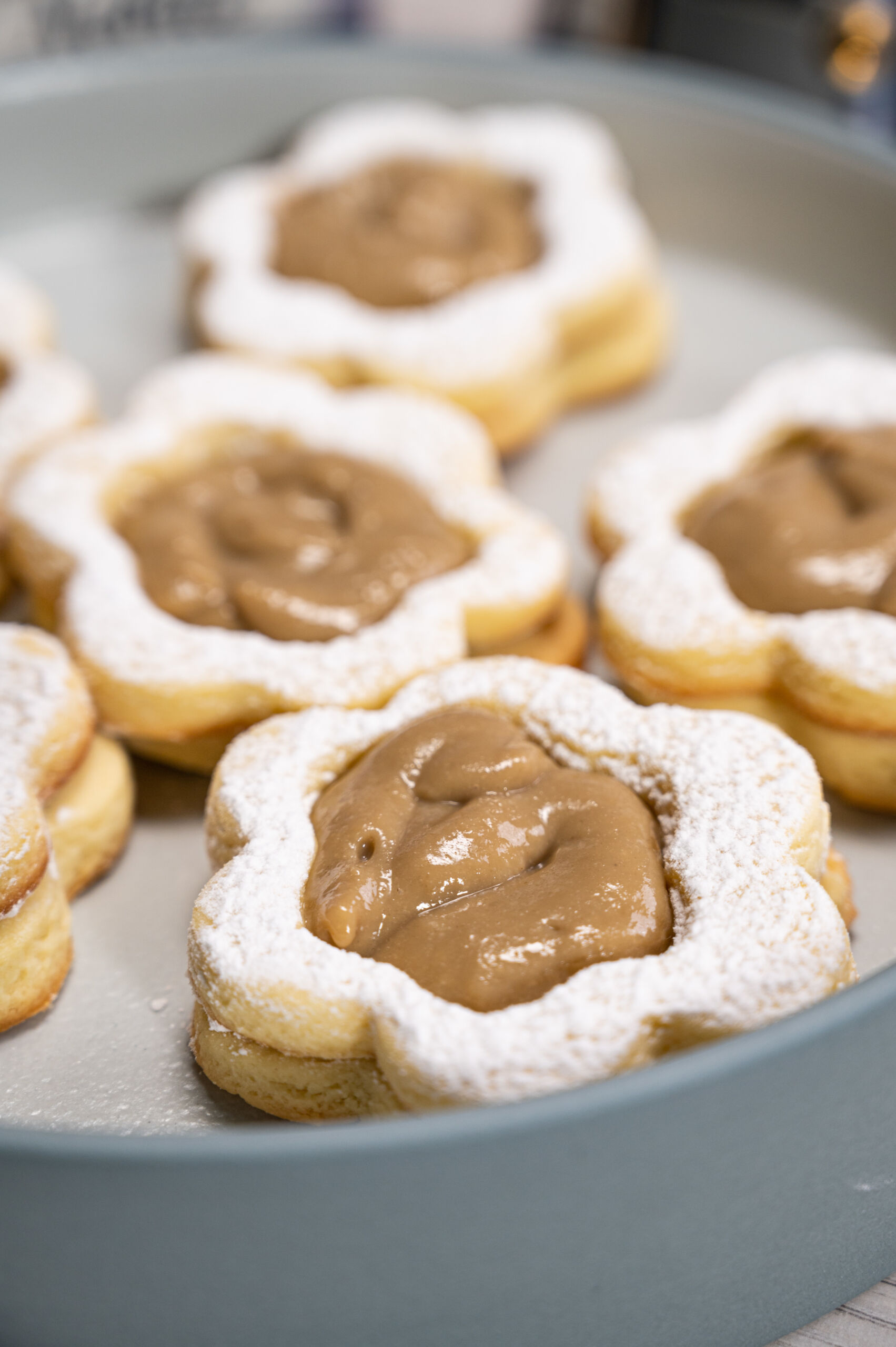 Gli occhi di bue al caffè sono pasticcini da tè, cui è davvero difficile resistere: due friabili dischetti