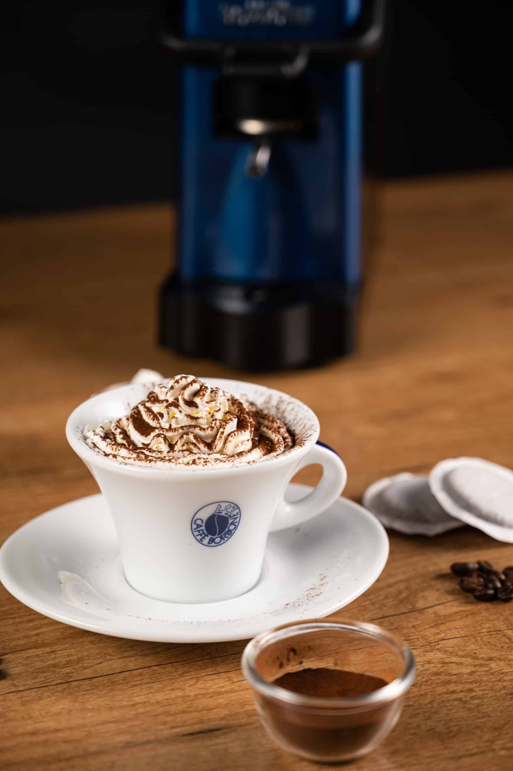 principali ovvero l'espresso Caffè Borbone e il latte intero montato, versati a coprire