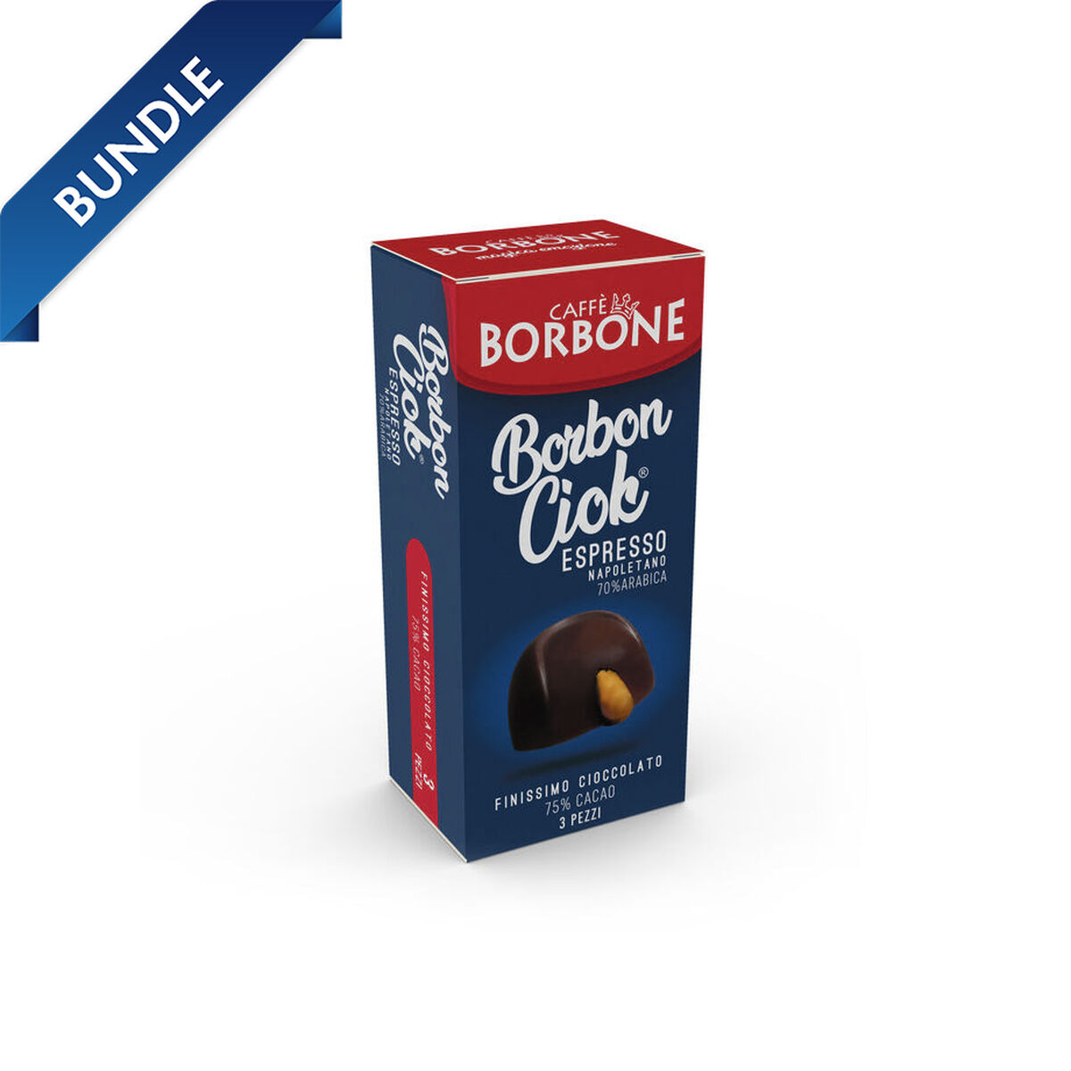 18 praline di finissimo cioccolato belga (75% di cacao) con un cuore di autentico espresso napoletano (70% arabica) preparato con Miscela Oro Caffè Borbone. Ogni astuccio contiene 3 pezzi.